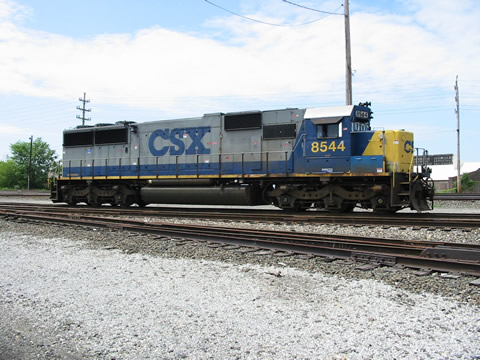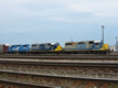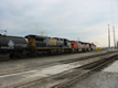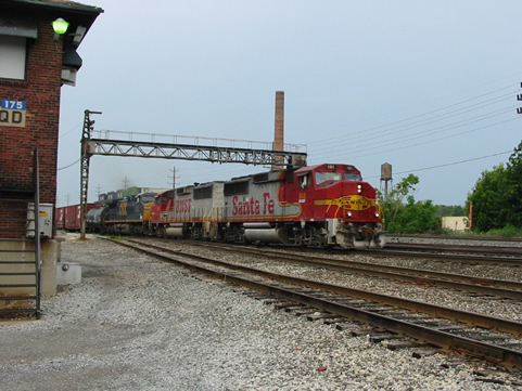 BNSF GP60M's 161 & 153 with CSX AC44 575 Collinwood Yard. 6/29/03